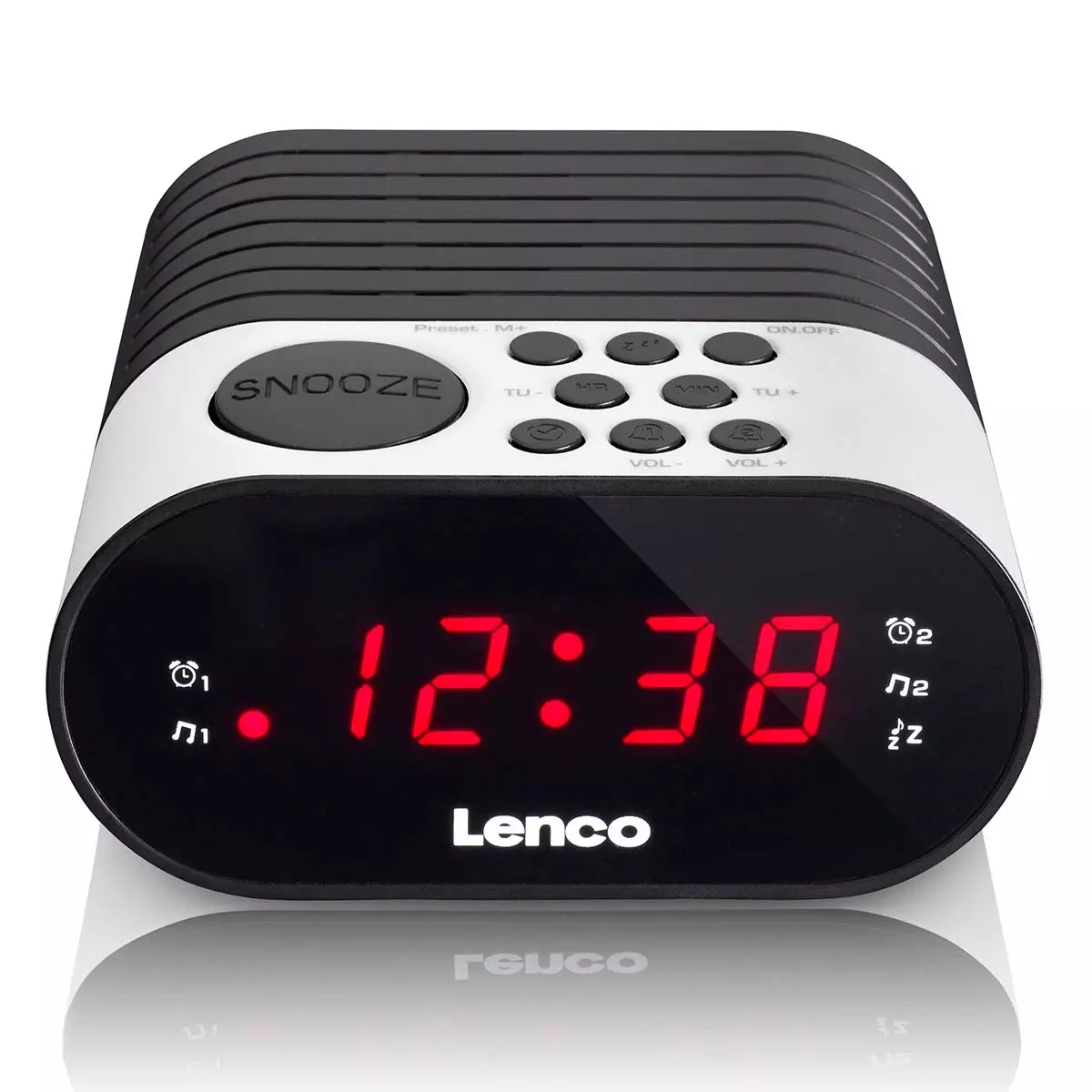 Lenco CR-07 FM klockradio har en elegant och modern design med flera användbara funktioner. Du kommer att bli förvånad över det fantastiska ljudet som kommer in i ditt rum genom den inbyggda högtalaren. Med PLL FM-tunern kan du ta emot alla dina favoritradiostationer. Tack vare sin design passar den perfekt på alla nattduksbord. Inga krångliga knappar och funktioner, utan en gedigen klockradio som du kan lita på. Även om strömmen går på natten vaknar du alltid i tid med den här klockradion tack vare den batteridrivna backupen, så det finns ingen ursäkt för att gå upp ur sängen för sent. Trots att klockradion är kompakt har den en stor och tydlig LED-skärm med rödfärgad tidsvisning. Det gör att du tydligt kan se vad klockan är även mitt i natten. Går du och din partner upp vid olika tidpunkter? Då är Lenco CR-07 perfekt för dig. Väckarklockan är utrustad med en dubbel alarmfunktion så att både du och din partner vaknar i tid. Vill du njuta av en sovmorgon medan din partner redan har lämnat huset? Använd då snooze-funktionen och njut av din favoritmusikkanal. Finns i 3 färger: blå, röd och vit.