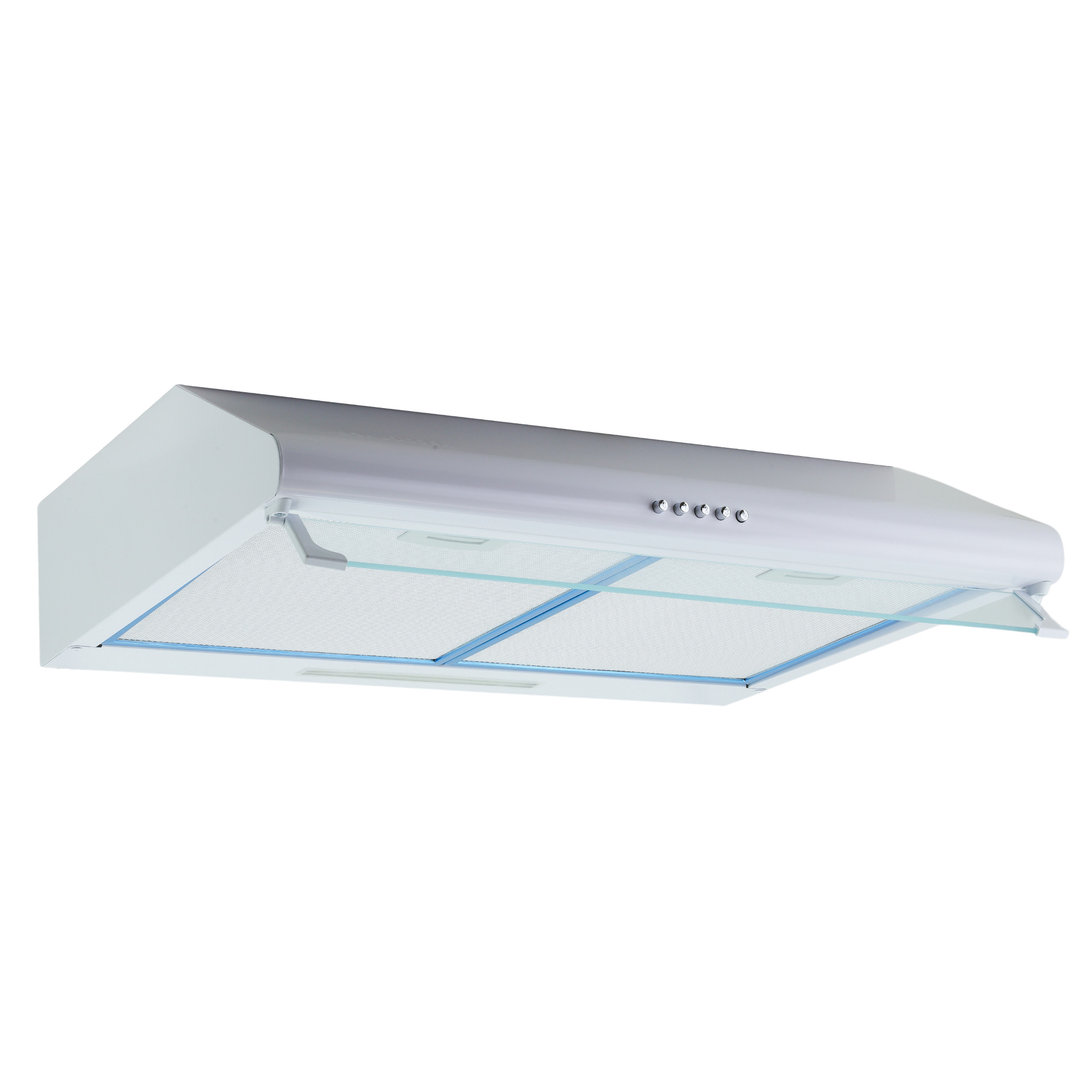 Schlosser köksfläkt 60 cm har en klassisk design, färgen är vit. Fläkten har tre hastigheter, två LED-lampor och aluminiumfilter.