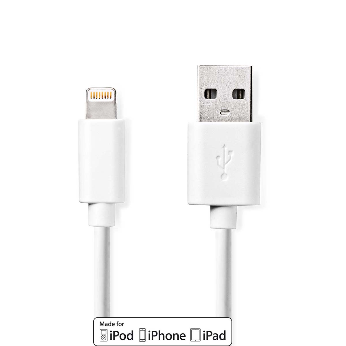 Lightning Kabel | USB 2.0 | Apple Lightning, 8-stifts | USB-A Hane | 480 Mbps | Nickelplaterad | 3.00 m | Rund | PVC | Vit | Låda