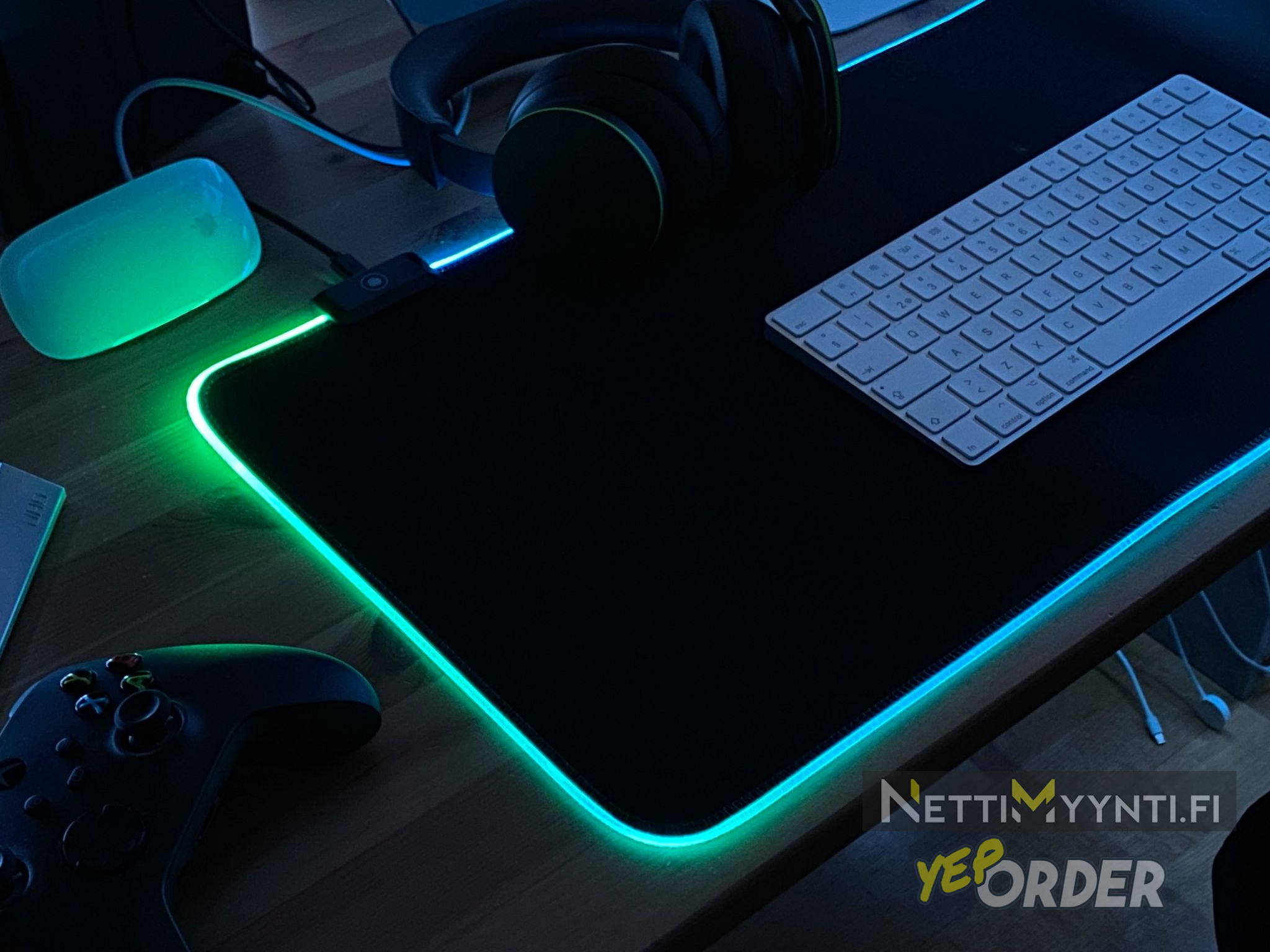 Rejäl storlek, utrustad med led-belysning och tungt tygmaterial, vilket garanterar optimal precision med optiska och laser-möss. Musmattan har även ett slitstarkt gummi och halkfri bas.