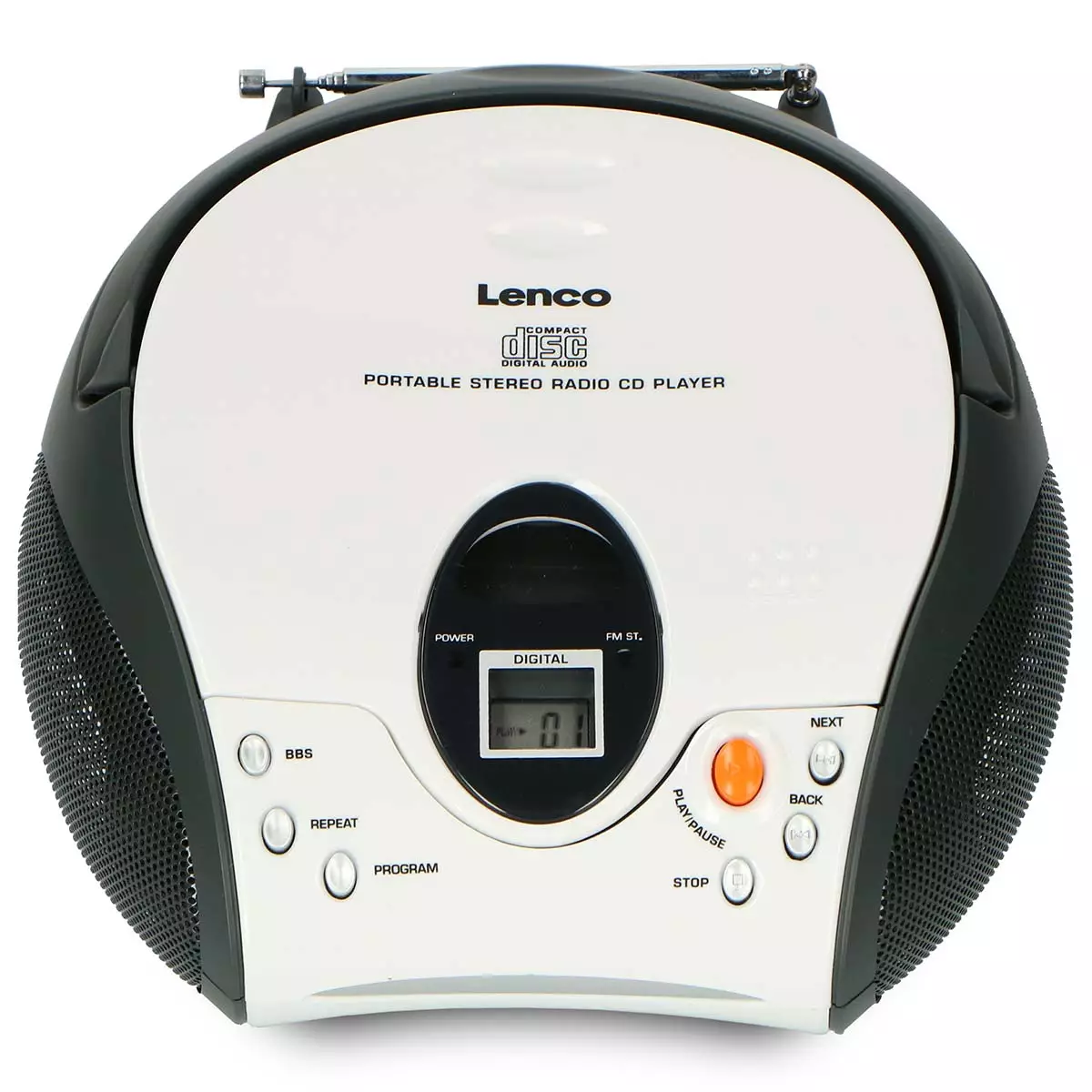 Portable stereo FM radio with CD player White