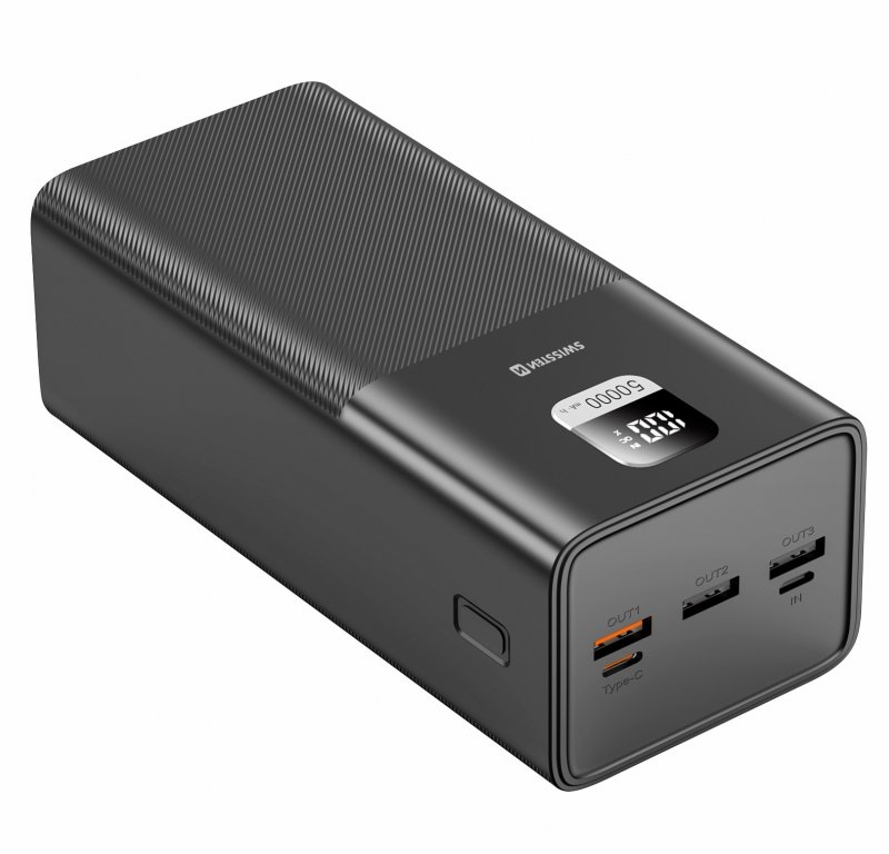 Swissten reservkraftkälla 50 000mAh 100W Swissten är lämplig för snabbladdning och är tillverkad av icke-brännbart material. Reservkraftkällan är utrustad med ett batteri på 50 000 mAh (185 Wh), 100 W effekt och stöder snabbladdningsmetoder såsom PowerDelivery 3.0, Qualcomm 3.0 och Huawei SCP.