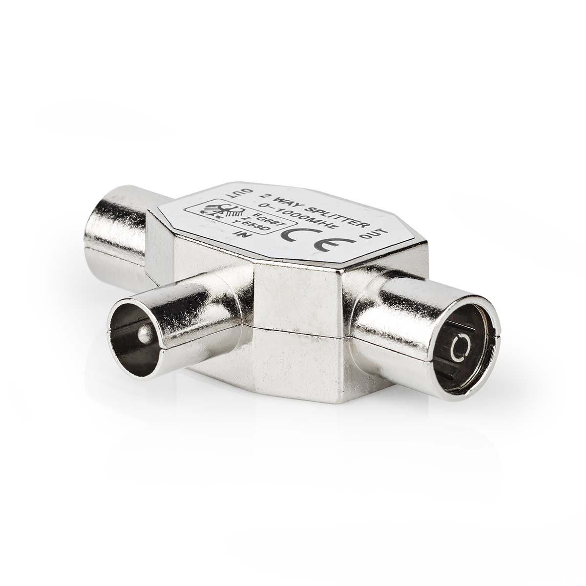 Satellite & Antenn Adapter | IEC (Koax) Hane | 2x Coax Hona | Nickelplaterad | 75 Ohm | T-Splitter | Metall | Silver | 1 st. | Låda