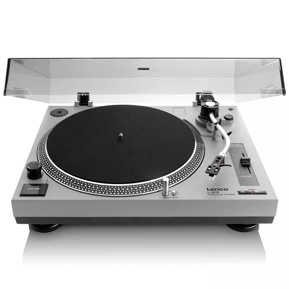 Who doesn’t want to listen to music from their own record player? The Lenco L-3810 record player creates a wonderful atmosphere in your living room. It’s not just a record player. It allows you to listen to music through external (amplified) speakers thanks to its built-in preamplifier. Alternatively, you can simply connect it to your existing stereo set. This model has a direct drive which causes it to be more powerful and run at a constant speed. What also makes this record player ideal, is that you can convert your music into digital files using USB. This allows you to listen to the music from your record collection on your digital devices! How cool is that? Convert your record collection to mp3This record player allows you to transfer the music from your record to mp3 via USB. Nostalgia and modernity go hand in hand, enabling you to listen to your entire record collection digitally. Built-in stereo preamplifierDo you enjoy listening to your music loudly? That's perfect, because this record player comes with a built-in stereo preamplifier. This means you won’t have to purchase a separate preamplifier and you can connect the record player directly to your stereo set. NOTE: you will need external speakers to produce sound. Removable plastic dust coverYou obviously want your record player to last a long time. To ensure that the player doesn’t get covered in dust, the Lenco L-3810 has a removable plastic dust cover. This keeps the record player looking like new. Mechanical arm liftThis record player comes with a mechanical arm lift. The mechanical part ensures that the record player’s arm makes a soft, smooth movement when descending onto the gramophone record.