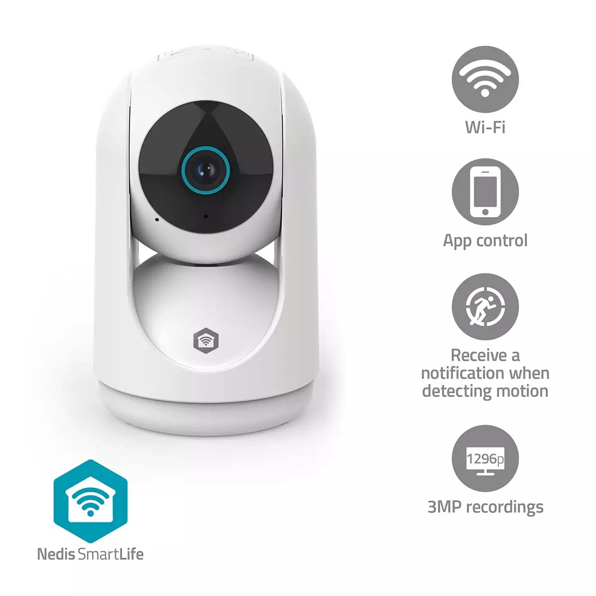 SmartLife Inomhus Kamera | 3MP Full HD 1296p | Panorera lutning | microSD (ingår inte) / Molnlagring (tillval) / Onvif | Nattsikt | Vit