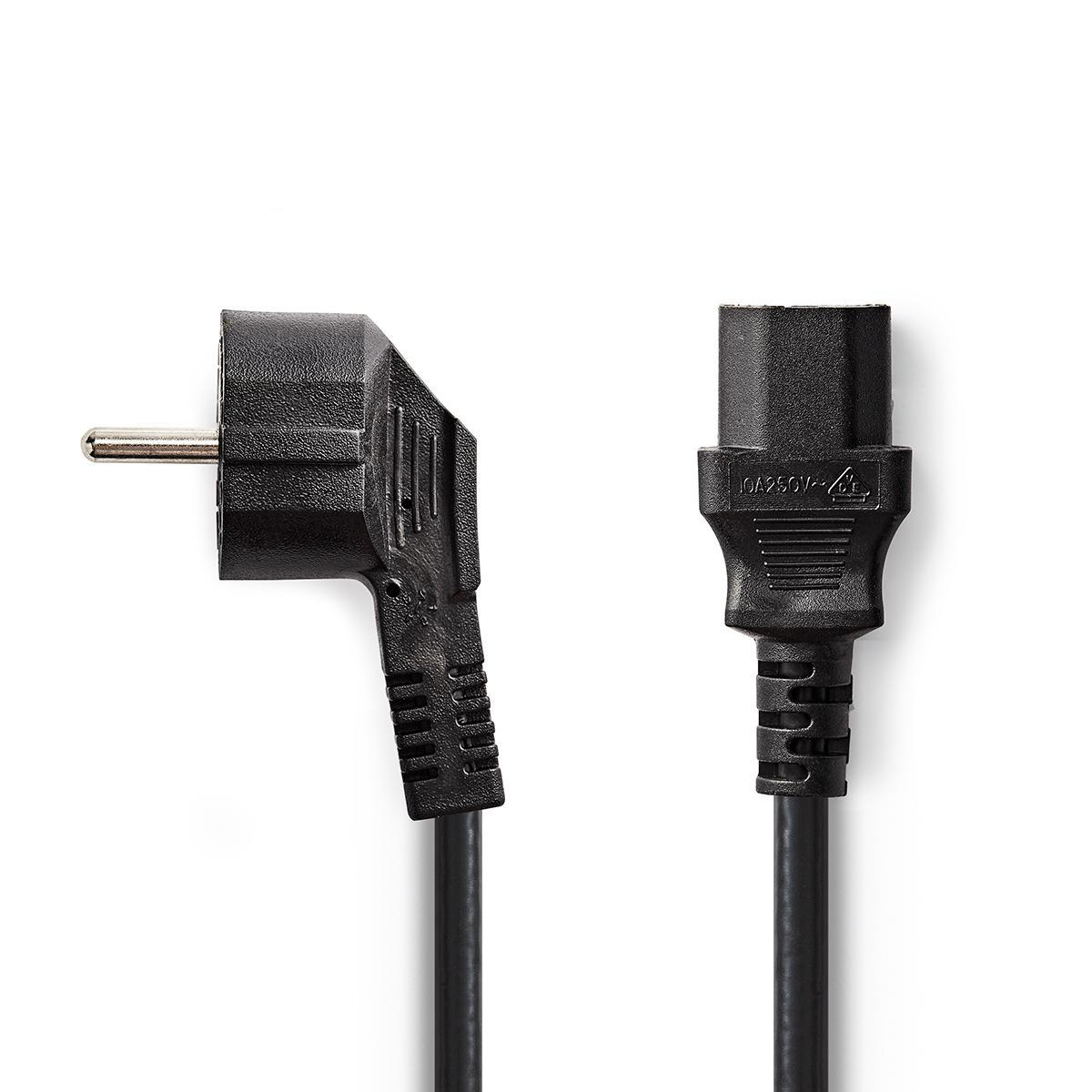 Strömkabel | Strömkontakt Hane | IEC-320-C13 | Vinklat | Rak | Nickelplaterad | 2.00 m | Rund | PVC | Svart | Kartong med fönster
