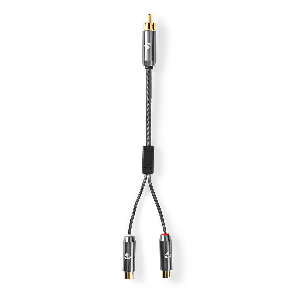 Subwoofer Kabel | RCA Hane | 2x RCA Hona | Guldplaterad | 0.20 m | Rund | 4.5 mm | Grått Med Metall | Kartong med täckt fönster