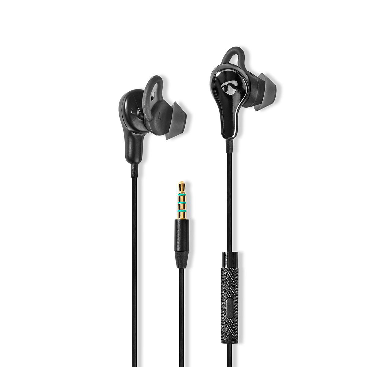 Trådbundna Hörlurar | 3.5 mm | Kabellängd: 1.20 m | Inbygd mikrofon | Volymkontroll | Öronvingar | Svart