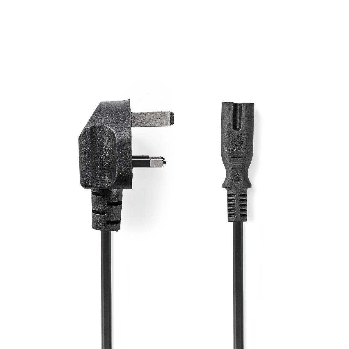 UK-strömkabel | UK Hane | IEC-320-C7 | 5.00 m | Ja | 2 x 0.75 mm² | Koppar | Rund | Nickelplaterad | UK | PVC | Nätkontakt: UK / Type G | 250 V AC | 3 A | Svart