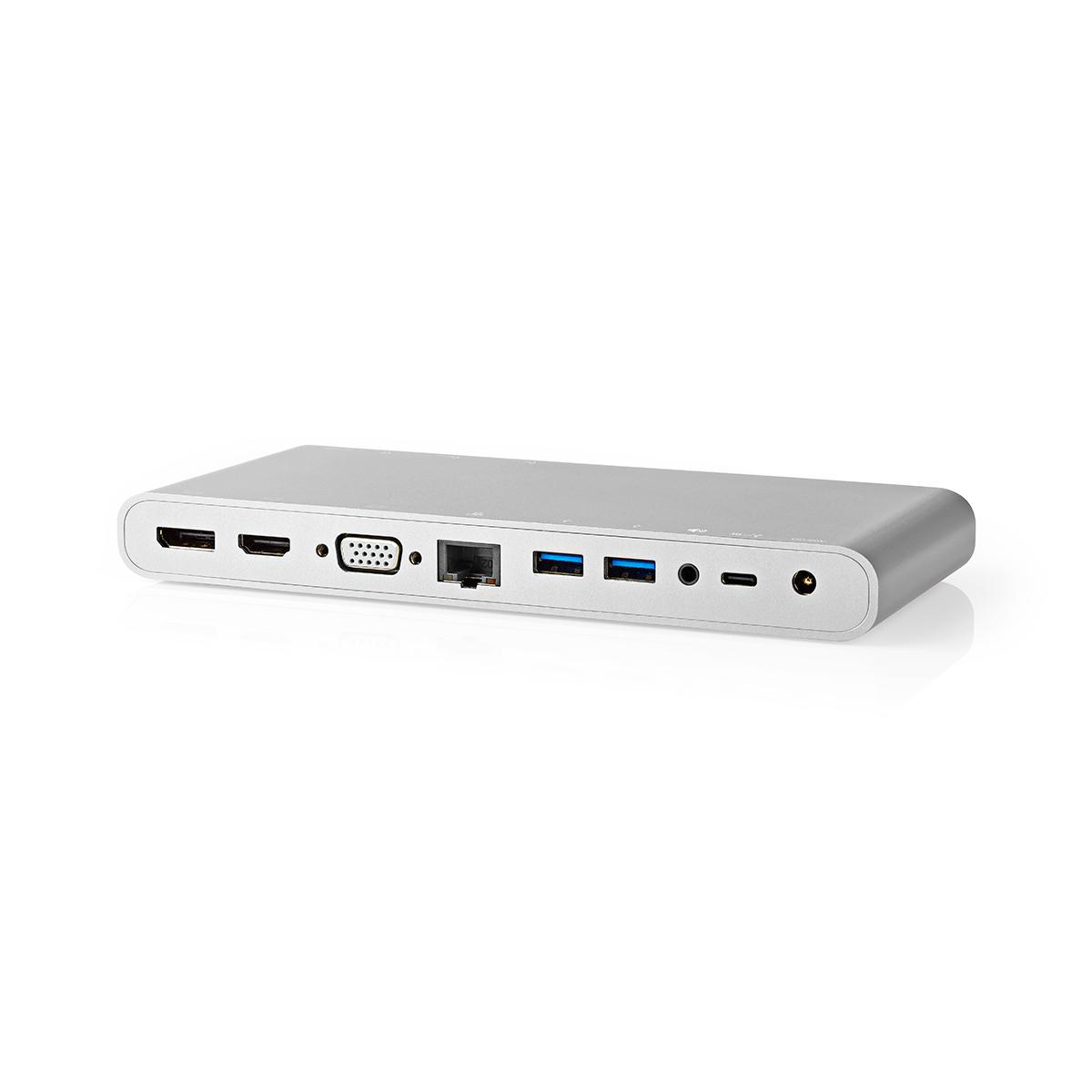 USB Dockningsstation | USB 3.2 Gen 1 | USB-C Hane | DisplayPort Hona / HDMI Utgång / RJ45 Hona / VGA hona 15p / 2x 3.5 mm, Hona / 2x USB-C / 4x USB-A | 0.20 m | Rund | Nickelplaterad | Flätad / Nylon | Vit | Window Box med Euro Lock