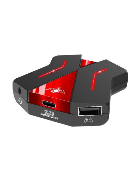 Spirit of Gamer Crossgame 2-kontrolladaptern SOG-CONV2 ansluter spelarens mus, tangentbord och hörlurar till önskad spelkonsolplattform. Adaptern fungerar med PS4, PS3, XBOX One och Nintendo Switch.