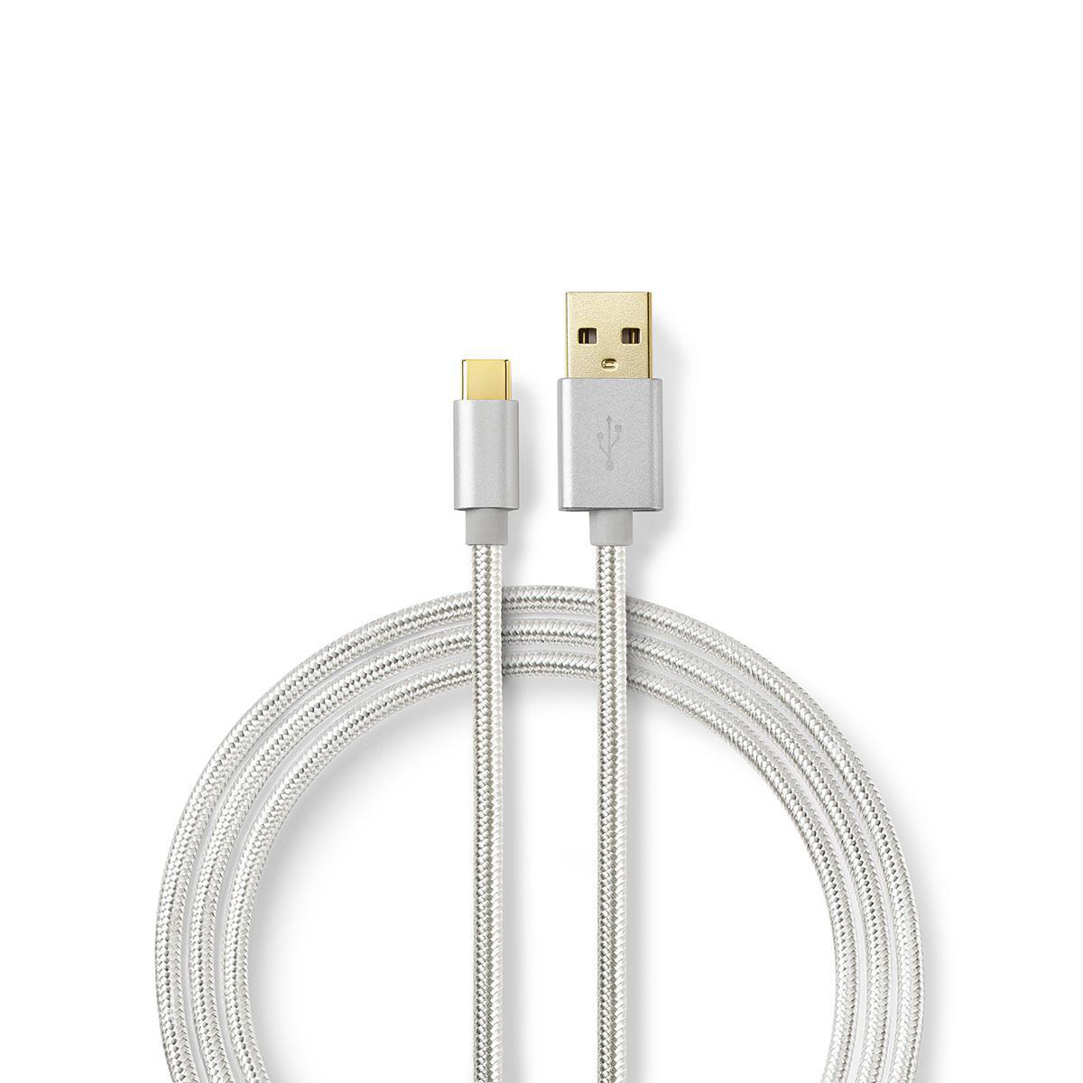 USB-kabel | USB 2.0 | USB-A Hane | USB-C Hane | 15 W | 480 Mbps | Guldplaterad | 2.00 m | Rund | Flätad / Nylon | Aluminium | Kartong med täckt fönster