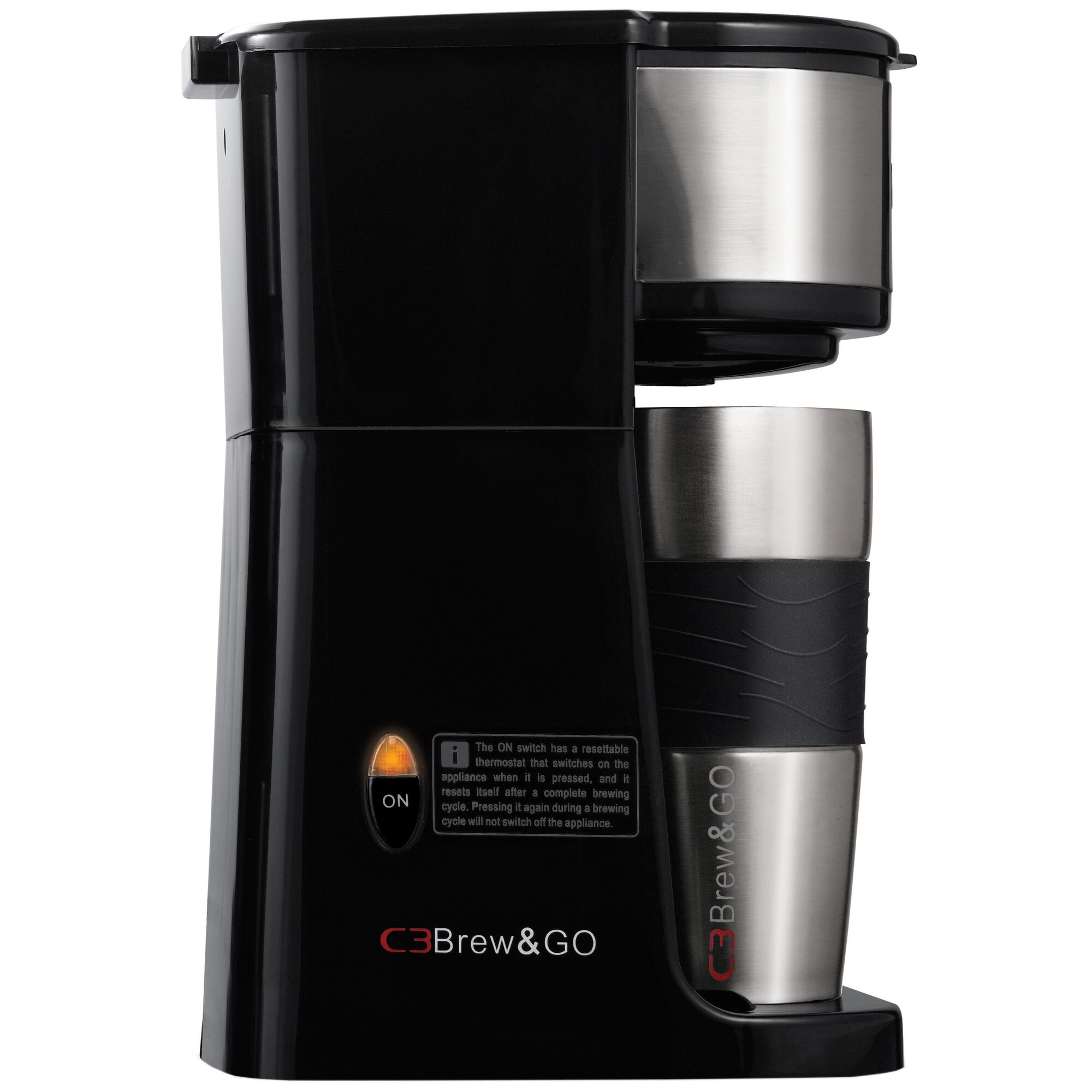 Den praktiska C3 Brew&GO 30-10612 förbereder kaffe direkt i en termosmugg. Den snabba maskinen förbereder 425 ml kaffe på bara 3,5 minuter.