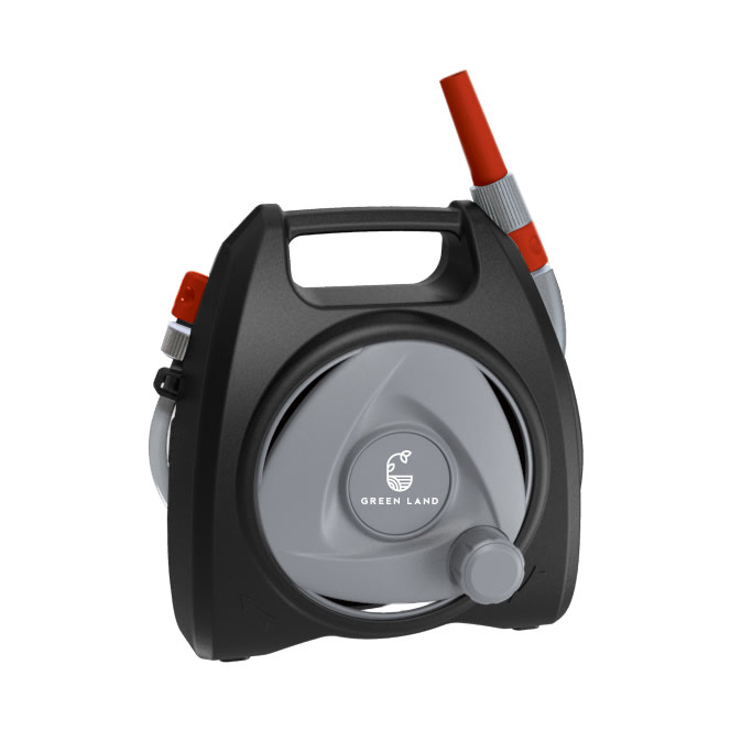 Green Land slangvinda mini är idealisk för att vattna växter på terrassen, balkongen och i små trädgårdar. Slangvindan är mycket praktisk, kompakt och lätt. Dess snygga design passar många gårdar utan att behöva dölja den mellan användningarna. Portabilitet gör det enkelt och bekvämt att använda.