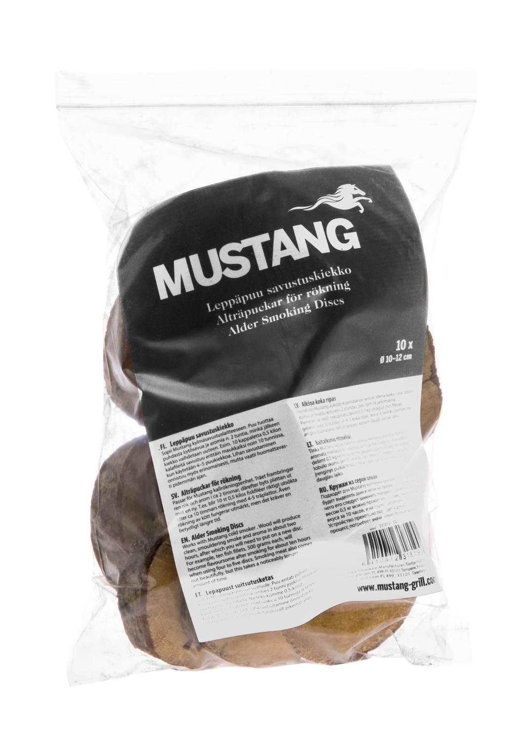 Passar för Mustang kallrökningsenheter. Träet frambringar ren rök och arom i ca 2 timmar, därefter byts pucken ut mot en ny. T.ex. blir 10 st 0,5 fiskfiléer riktigt utsökta efter ca 10 timmars rökning med 4-5 st träpuckar.