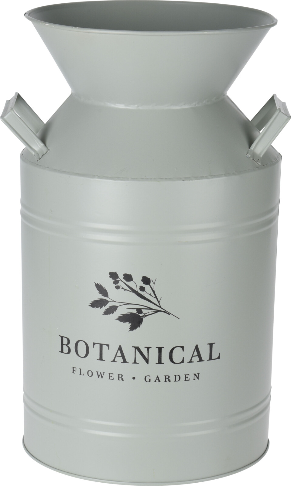 Stilfull grön zinkmjölkkanna, galvaniserad, dekorerad med tryck, 23x21,5x37,5 cm.