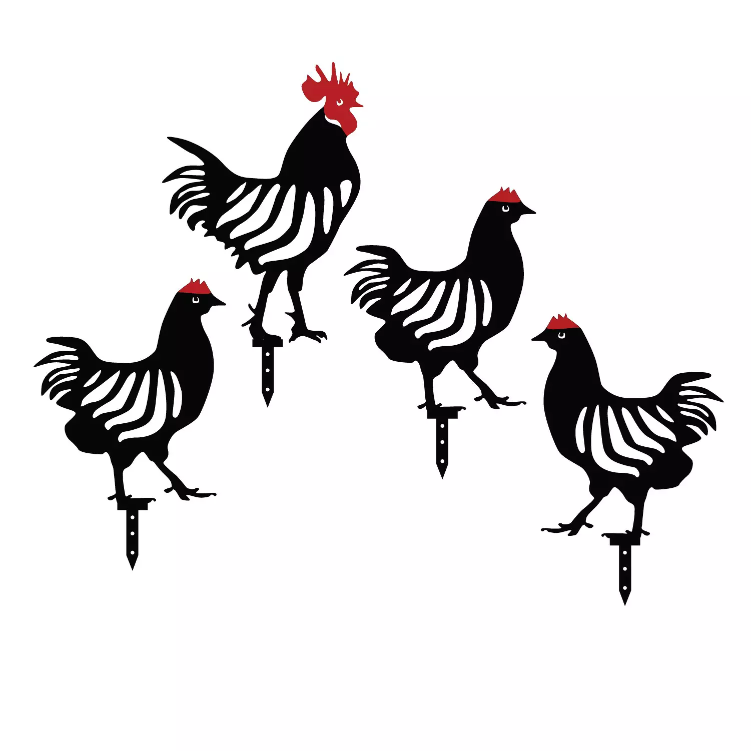 Förvandla din trädgård till ett fantasifullt paradis med vårt fantastiska dekorativa metalltillbehörsset för trädgården! Tillverkat av 100% metall med en tjocklek på 1,2 mm, kommer dessa charmiga hönsskulpturer att ge en touch av rustik elegans till ditt utomhusutrymme.