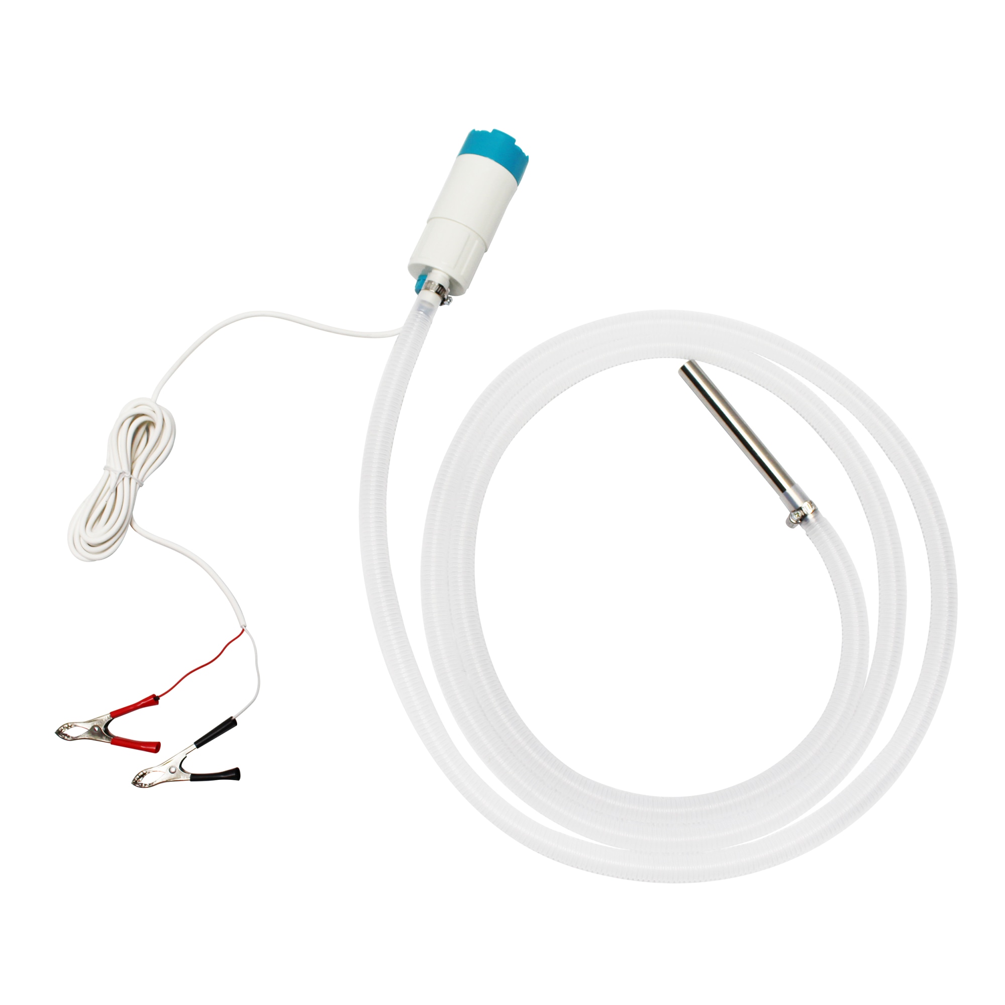 En batteridriven dränkbar pump som flyttar 17 liter vätska per minut. Pumpen är utrustad med ett effektivt filter som är lätt att rengöra. Lämplig för användning med till exempel fotogen, diesel, lätta oljor och vatten. Använd inte med bensin eller andra flyktiga vätskor.