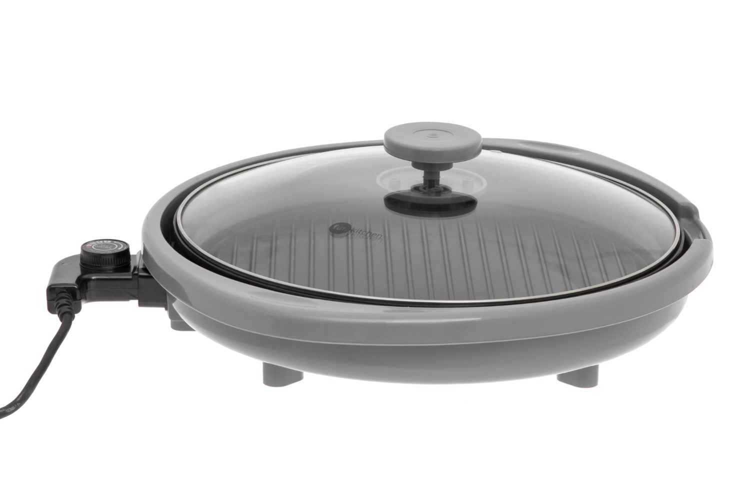 En liten och smidig elgrill med nonstick-beläggning. Grillen är utrustad med fettuppsamlare, avtagbar termostat, tipp. Den isolerade kroppen håller sig sval under drift. Glaslock med härdat glas. Finns i färgerna vit och grå.