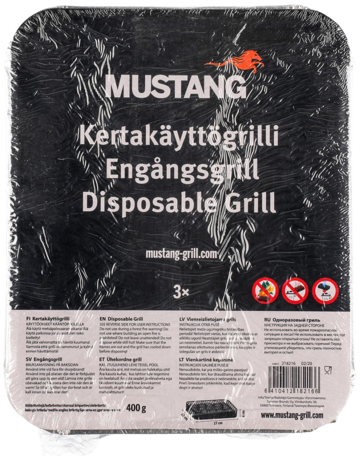 Engångsgrill 3 st set Mustang 400g briketter