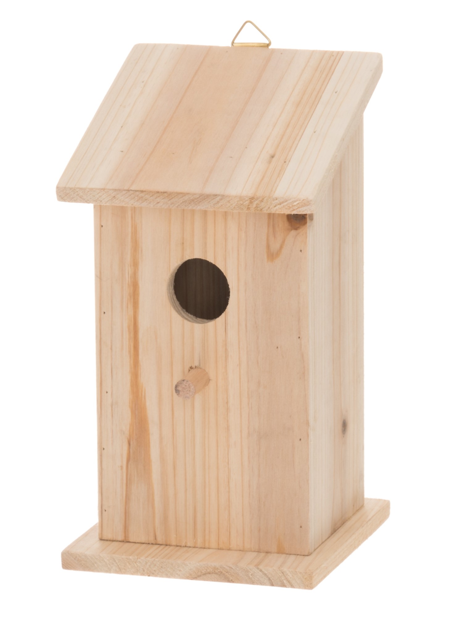 Liten enkel fågelholk. Inloppsdiameter 28 mm.