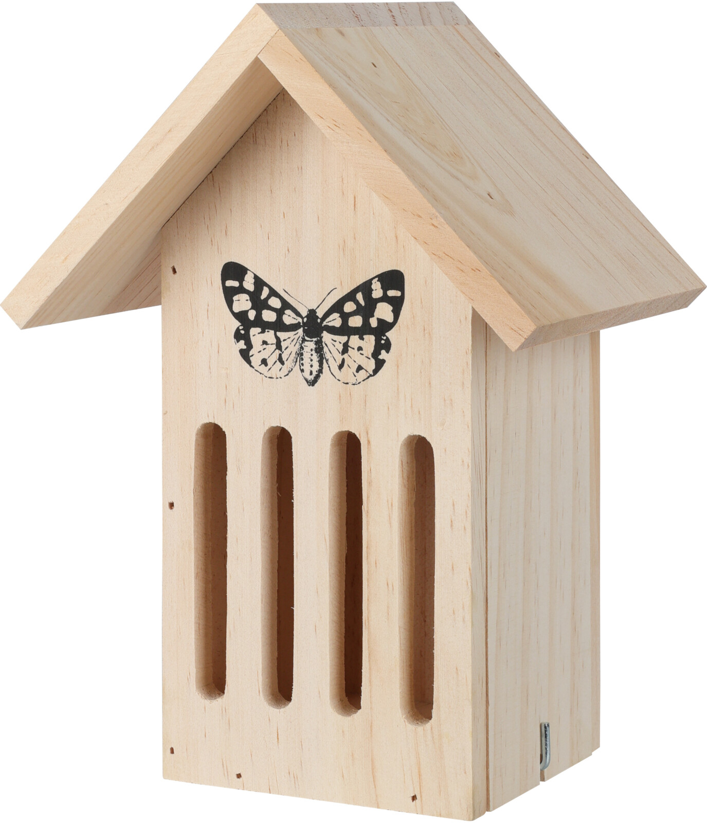 Fjärilshotellet är ett bohus designat för fjärilar. Ett hus av trä lockar fjärilar till gården och erbjuder en skyddad övervintringsplats.