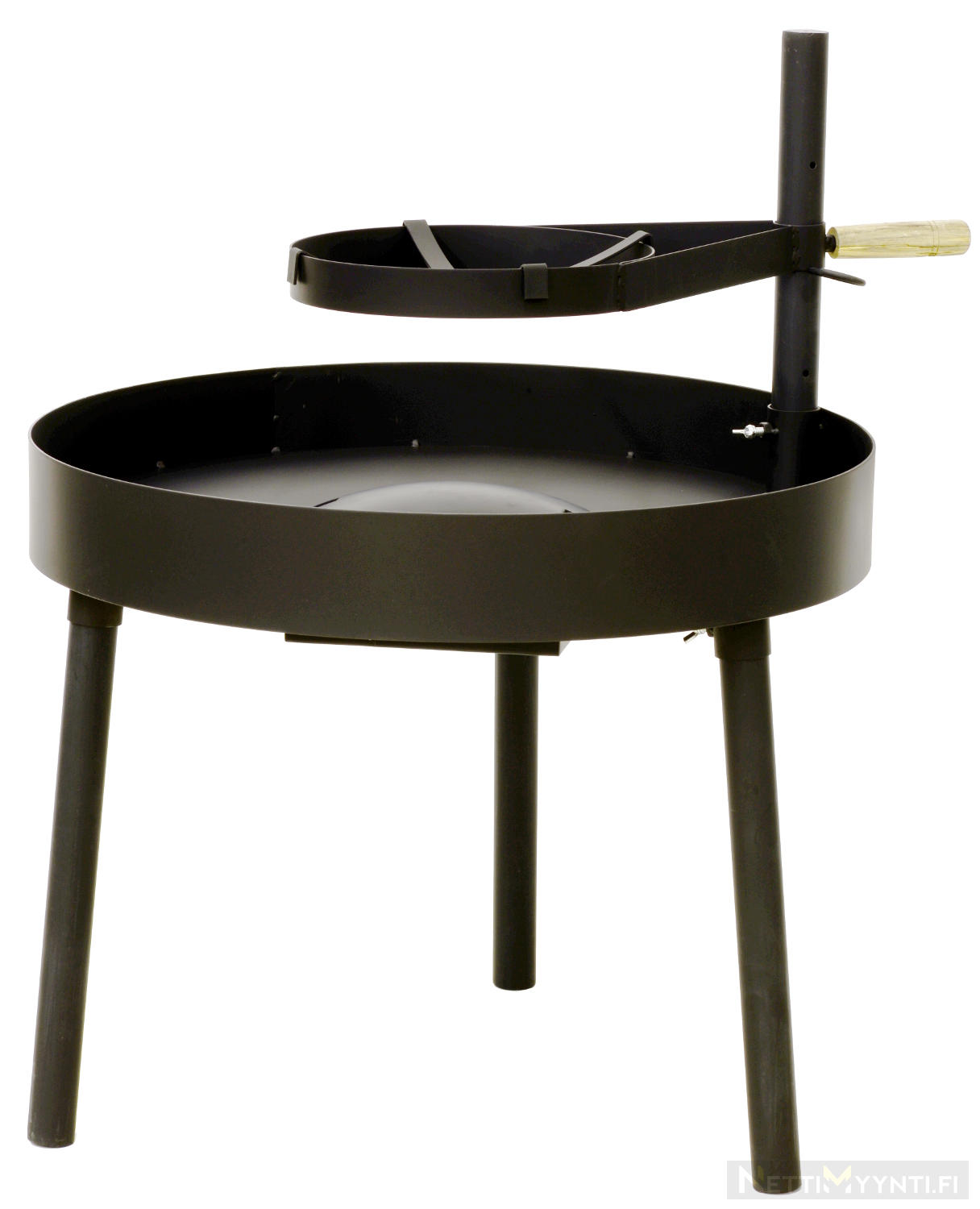 Snygg och hållbar grill som är tillverkad i robust gjutjärn. I denna gårdsgrill kan du elda större vedklabbar, eldstaden är 70 x 10 cm. Grilltemperaturen justeras genom att höja eller sänka stekplanet som även kan vridas bort från elden vid behov.