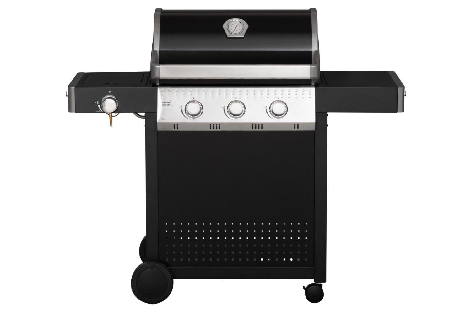 - Gourmet 3 + 1 grill har tre effektiva brännare och en vindtät sidokokare