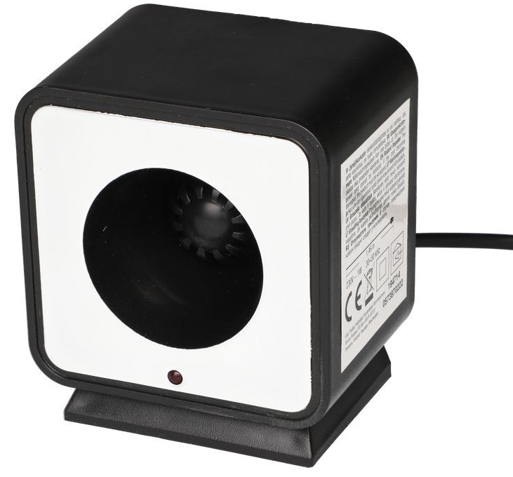 En skrämma som fungerar med ultraljud för gnagare som avger högfrekventa (30-50 kHz) ljud stöter bort möss, råttor och andra gnagare från ett område på cirka 30 kvadratmeter.