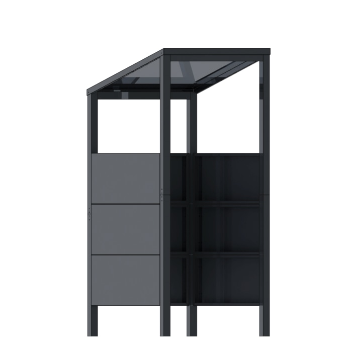 Green Land-skydd för soptunna i aluminium är slitstark och snygg. Det skyddar avfallsbehållaren från väder och vind och gör samtidigt trädgårdsområdet bekvämare. Ramen på kapellet har 10 års garanti för privat bruk.
