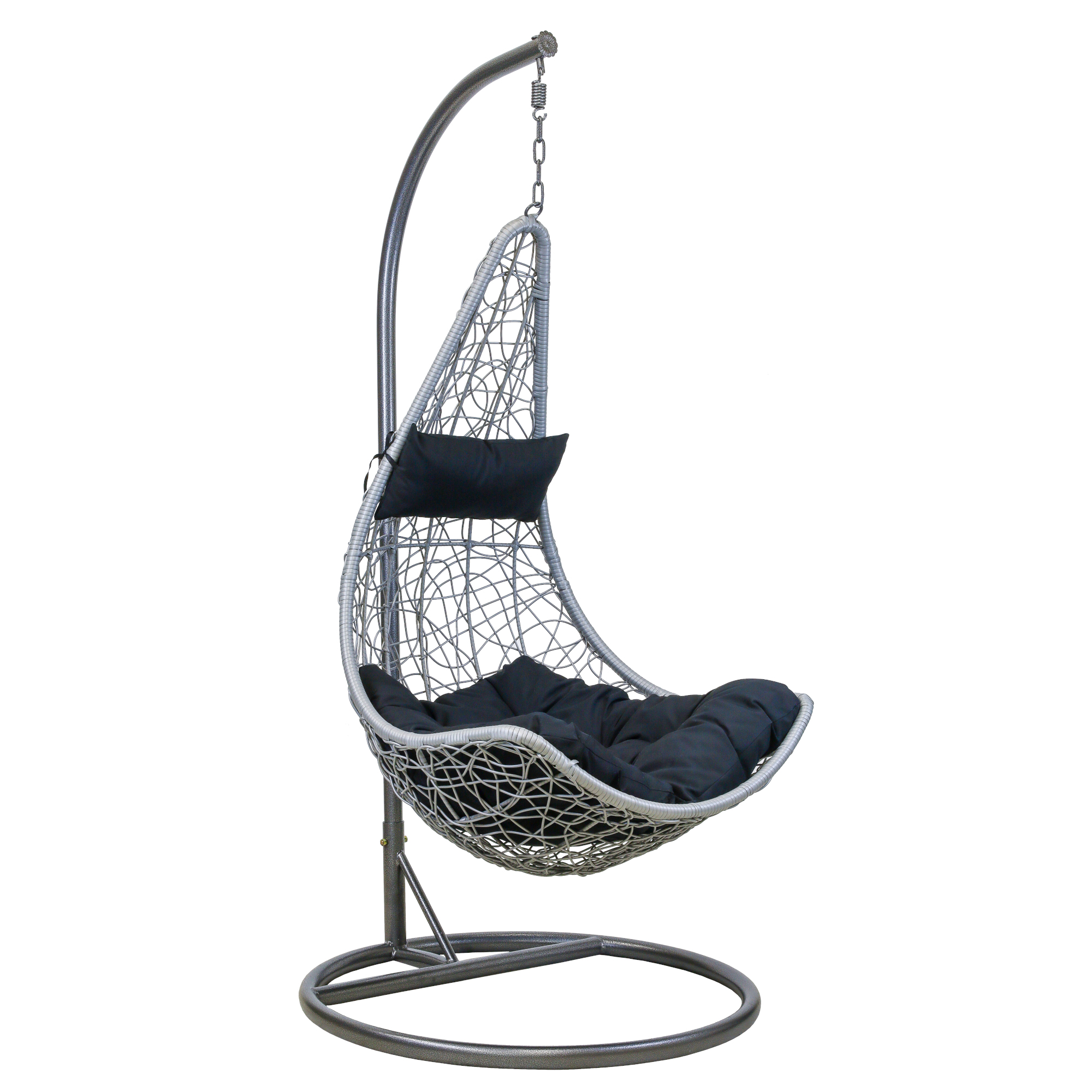 Den kraftiga stålramen ger dig friheten att placera stolen var som helst på en plan yta - även i vardagsrummet! Hänggungan har inte ben som en traditionell gungstol, så tår, fingrar och svansar är skonade från skador. De medföljande plyschpolyesterklädda kuddarna och nackkudden med snörefäste gör stolen till en oemotståndlig plats att tillbringa din fritid på. Hängstolens bärförmåga är 130 kg, så barn som bråkar om gungan kan sitta samtidigt!