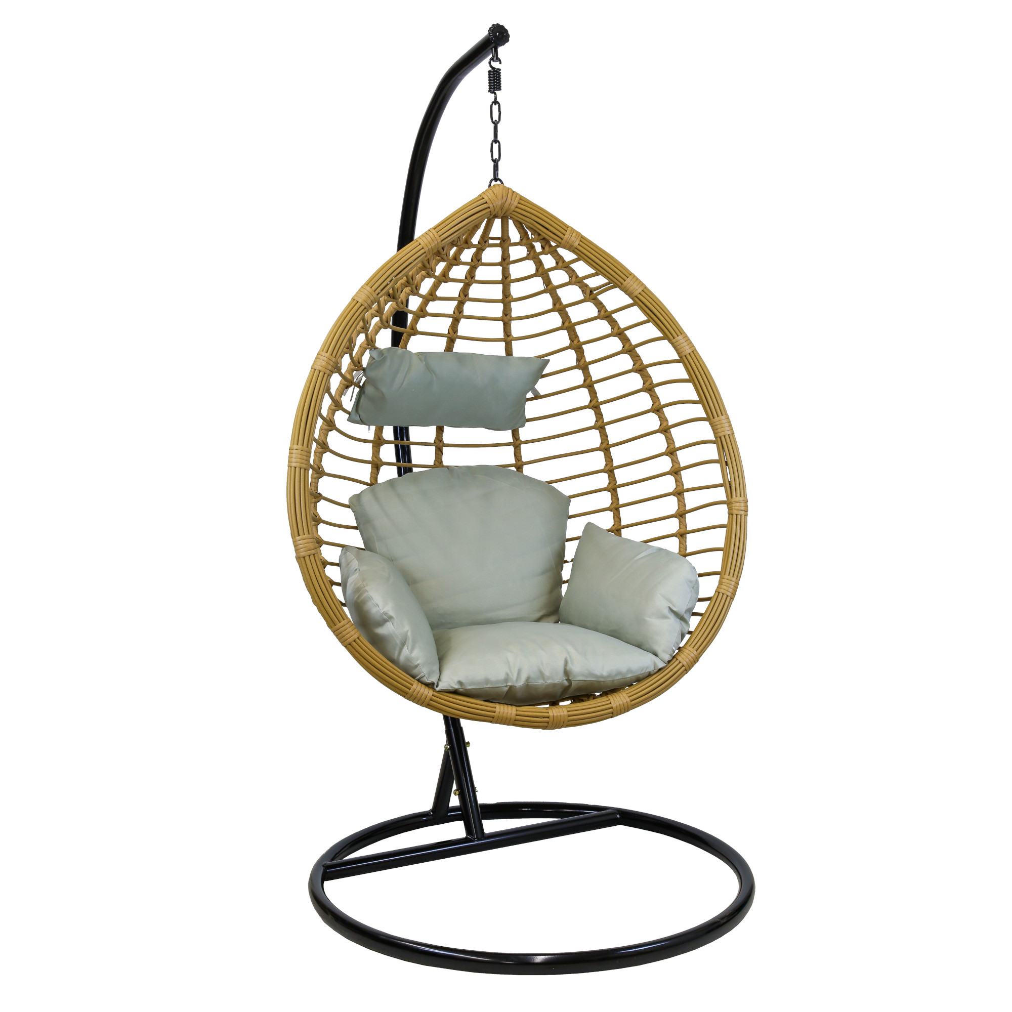 En underbar hänggunga av PE rottingfläta med stålben. Inkluderar en stor sittdyna med snörefäste.