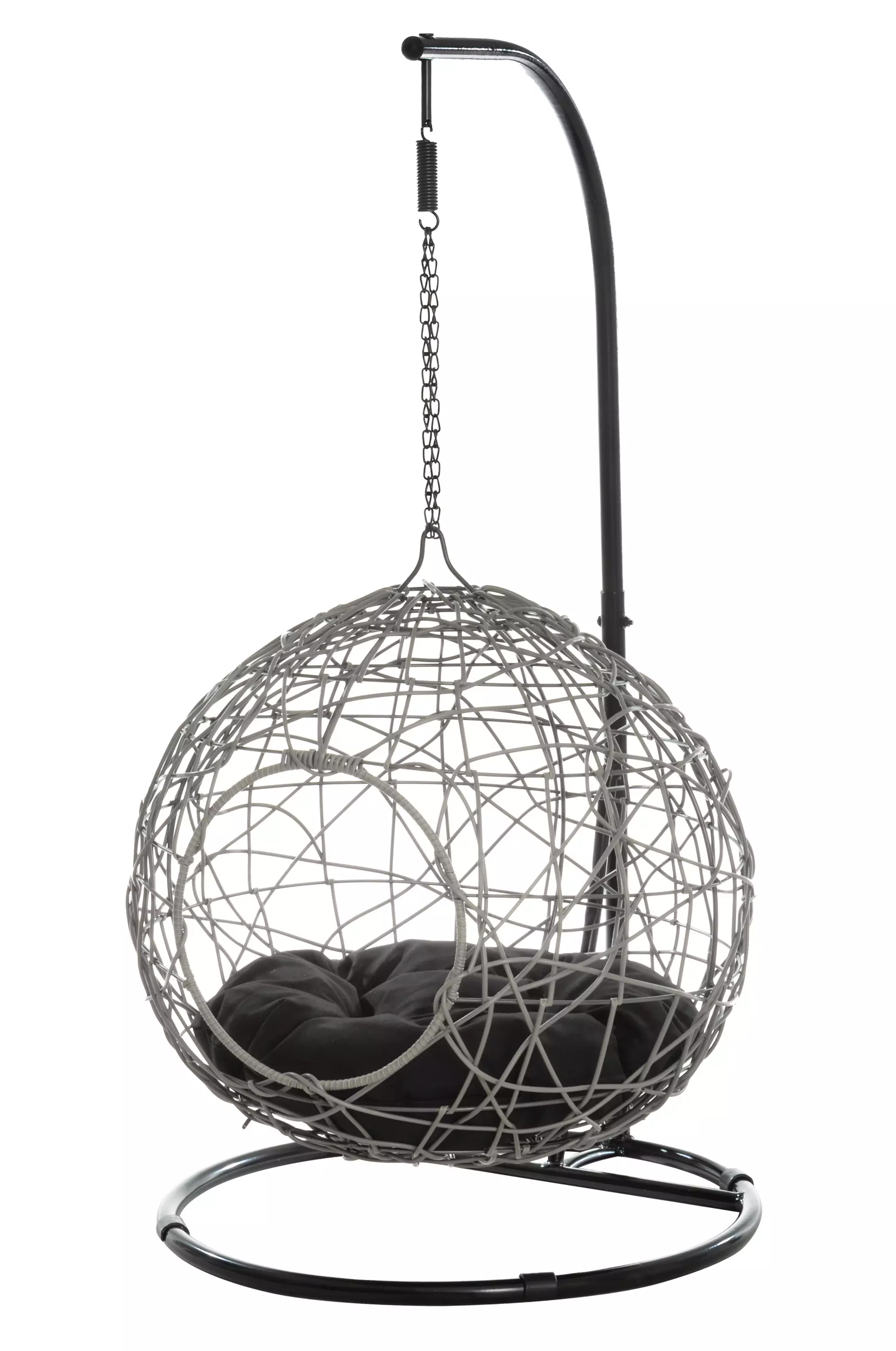Stålram, 25 mm och 16 mm rör, platt PE-fläta 8 x 1,3 mm och rund 4,5 mm fläta. Grå ram och sittdyna 200g / m2. Ett säkerhetsbälte som håller dynan på plats.