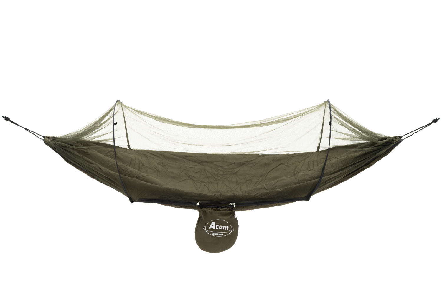 Hängmatta som är utrustad med ett myggnät, strålande ide eftersom du enkelt att njuta utan insekter! Hängmattan är enkel att ha med sig och tar upp väldigt lite utrymme ihopvikt.