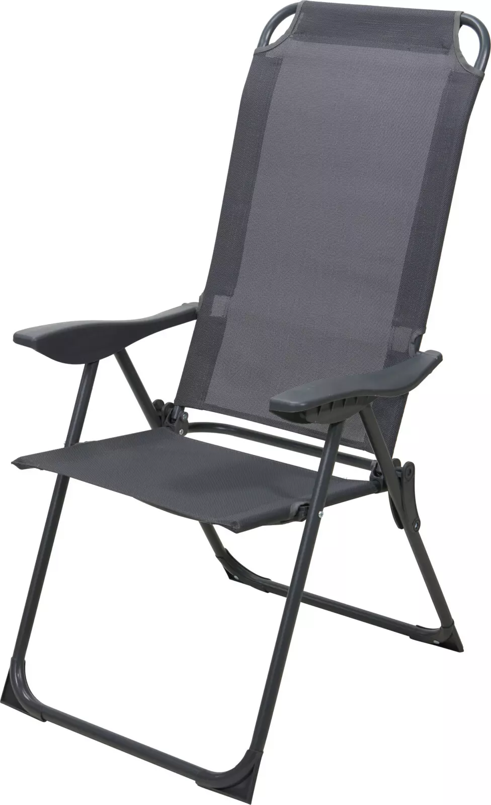 Hopfällbar stol med hög rygg och armstöd, mörkgrå Metallinen puutarhatuoli