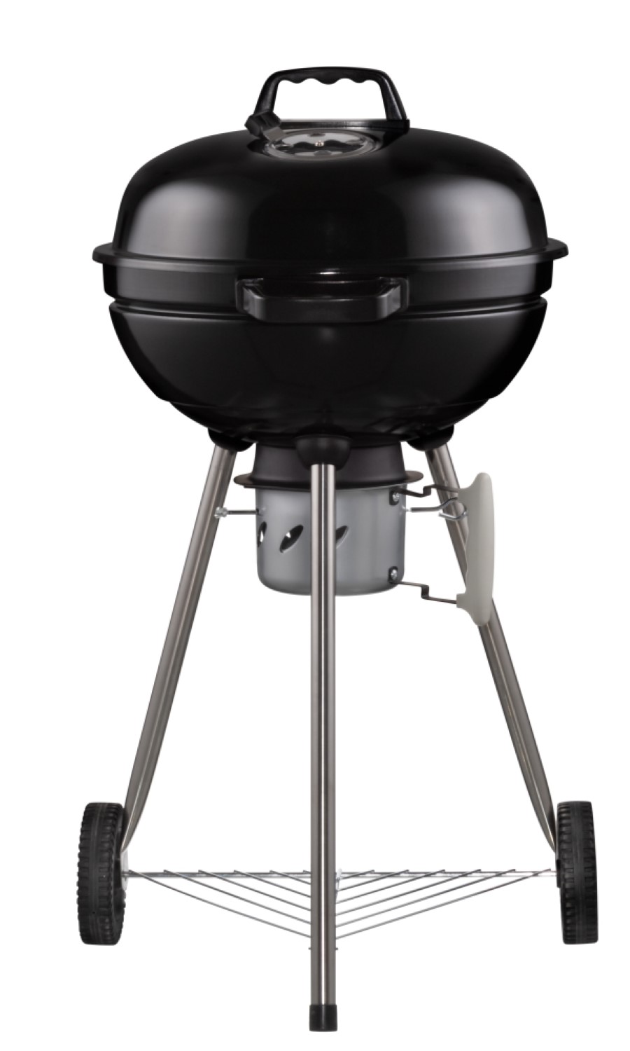 Kolgrill Ø 44 cm grillyta. Grillgaller av förkromat trådstål. Kolgallret är tillverkat av galvaniserat stål. Glansig emalj på locket och botten. Under grillen finns en avtagbar askkopp, genom vilken även luftmängden för kol justeras. Luftreglerventil på locket för dragkontroll. Stabila handtag och 2 stora hjul gör det enkelt att flytta grillen. Garanti 1 år.