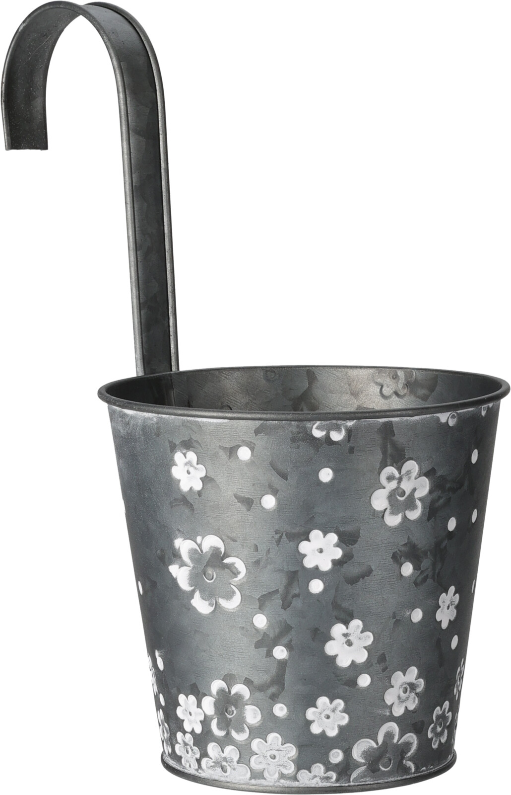 Denna runda kruka är tillverkad av zink och dekorerad med vita tusenskönor, vilket gör den till en charmig tillägg i varje trädgård eller inomhusmiljö. Krukan inkluderar en hängkrok, vilket gör det enkelt att placera den exempelvis på en balkong eller terrass.