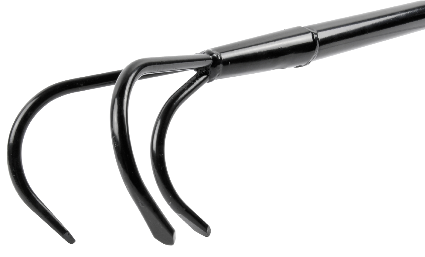 Kultivator i metall med ett långt skaft. Nu behöver du inte stå på knän eller med böjd rygg för att få bort ogräset! Kultivatorn har ett skaft på 150 cm och tre starka klor ger ogräset en bra åktur.