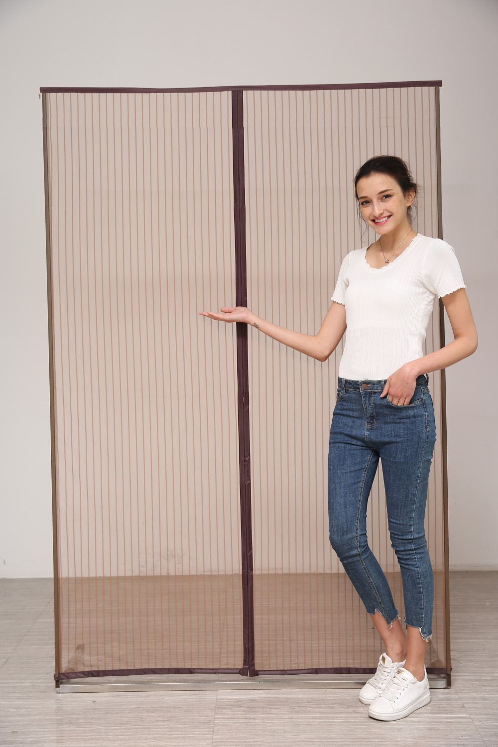 Universal lamell-myggnät för dörröppning, maxstorlek 200x100 cm. Väldigt lätt att montera och skära till passande storlek.Nät-lamellerna fästs i varandra med magnet.