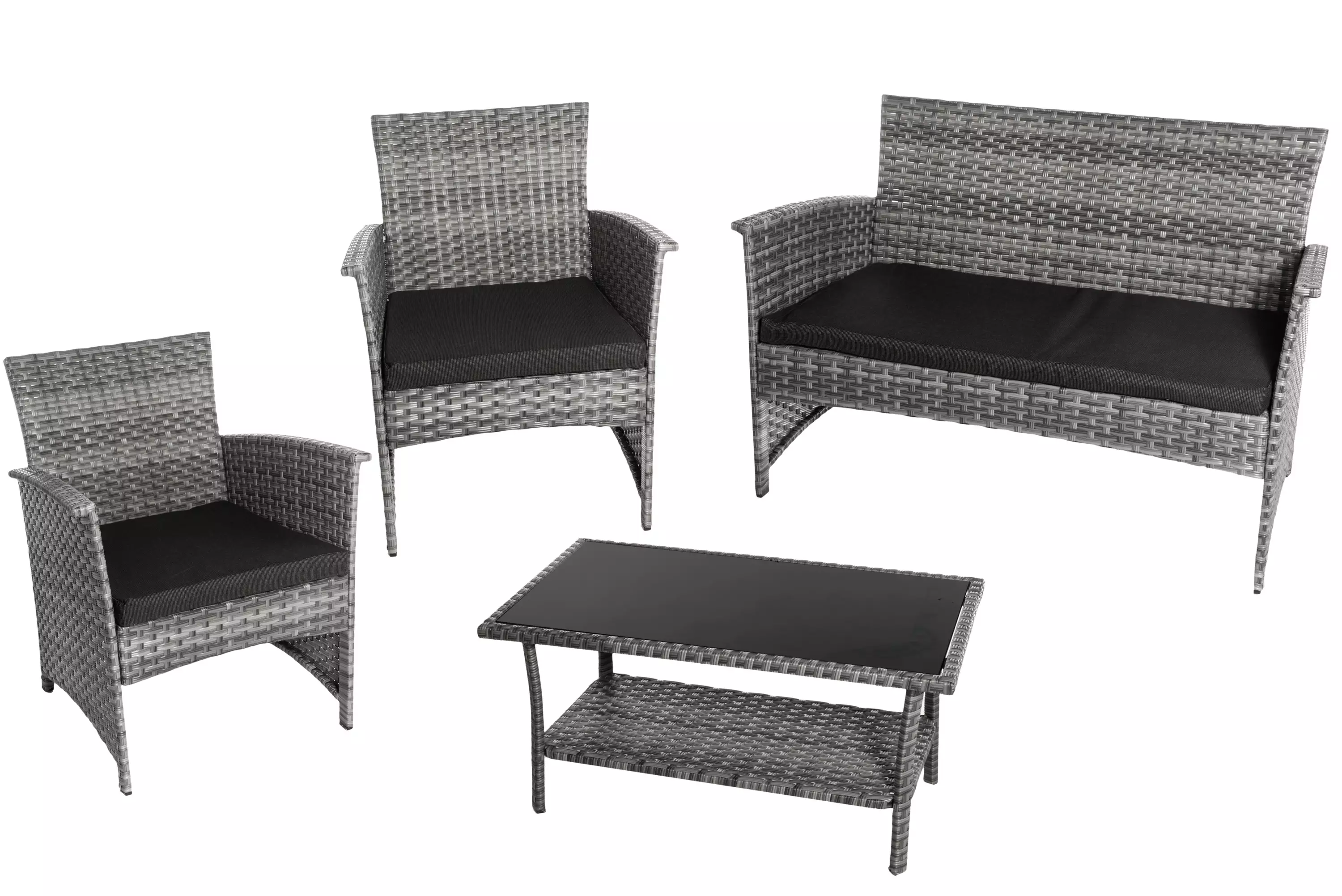 Bekvämt kompakt. Den graciösa och tidlöst färgade sittgruppen Tobago passar även till en mindre uteplats eller terrass. Lättskött polyrotting som håller sig snygg många, många år, och tack vare sin lätthet gör den möblerna lätta att flytta. Den grå färgen framhävs av de svarta, 5 cm tjocka sittkuddarna och bordsskivans härdade, svarta glas. Det fyrkantiga bordet har en hylla i polyrotting under bordsskivan. Sitthöjden på soffan och stolarna med sittdynan är 45 cm och djupet på sittdelen är 61 cm.