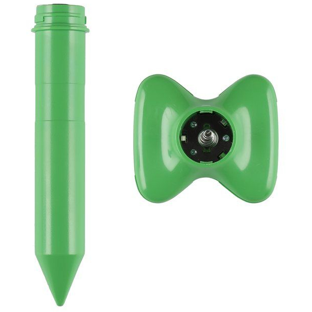 Batteridriven ljud- och vibrationsavskräckare för mullvadar och gnagare. Lätt att installera, väderbeständig, barn- och djurvänlig. Drivs av två D-batterier (ingår ej).