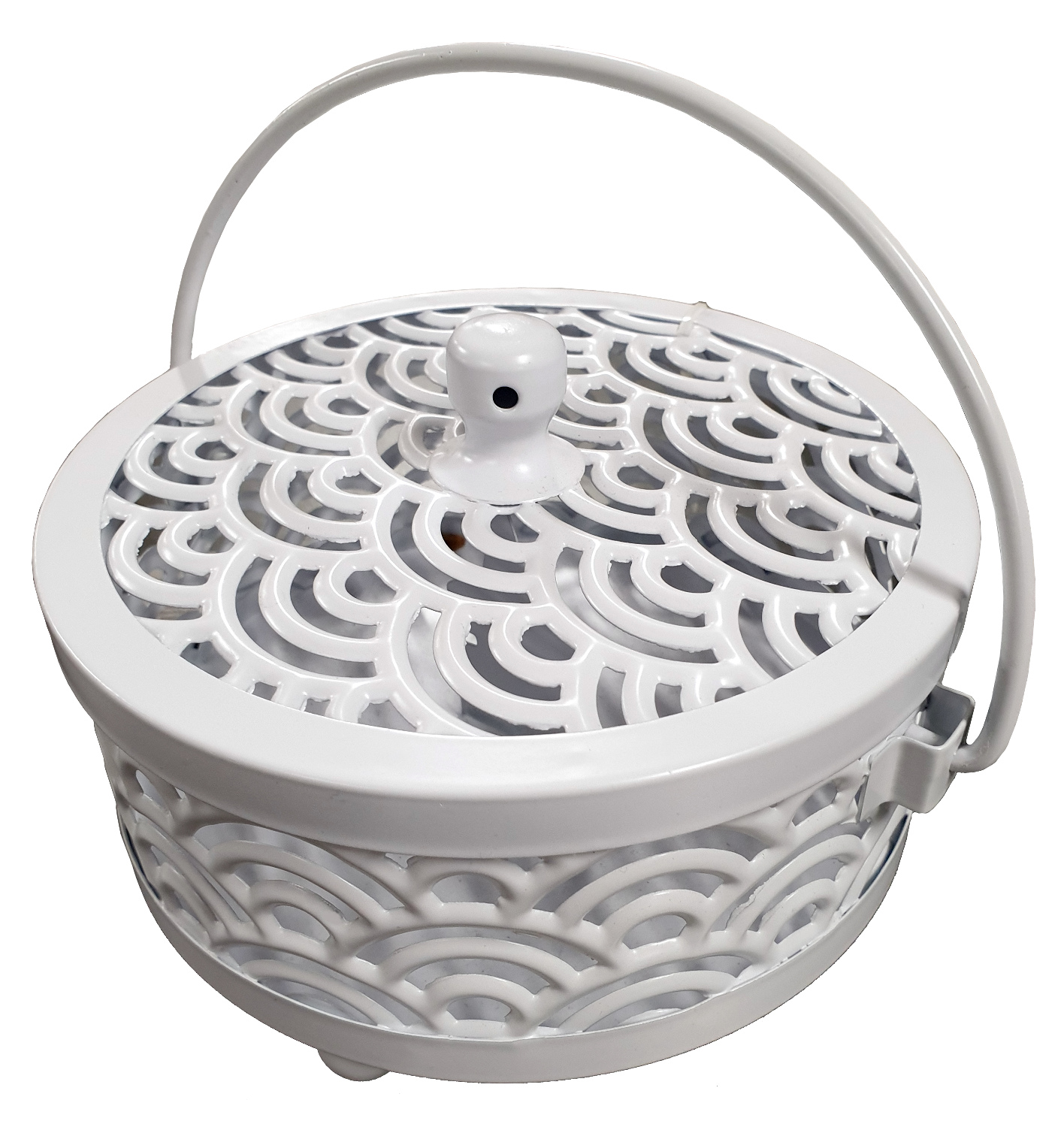 Sommar och alla irriterande myggor! Här finns en vacker vit myggspiral hållare som gör sig snygg på bordet!