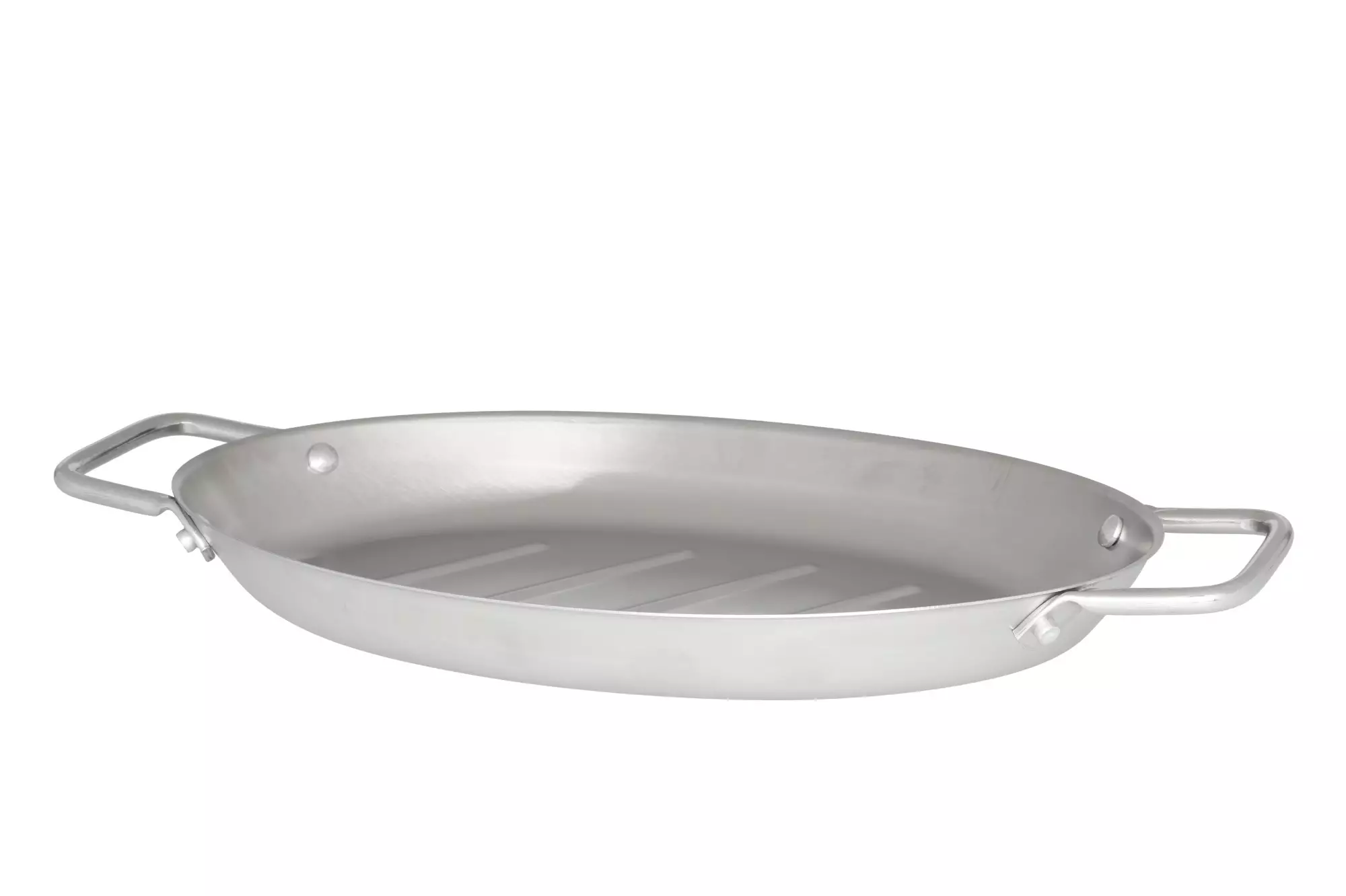 Oval grillpanna i rostfritt stål. Perfekt för att laga mat med vackra grillränder både inomhus och utomhus. Ger en jämn värmefördelning för goda matlagningsresultat.