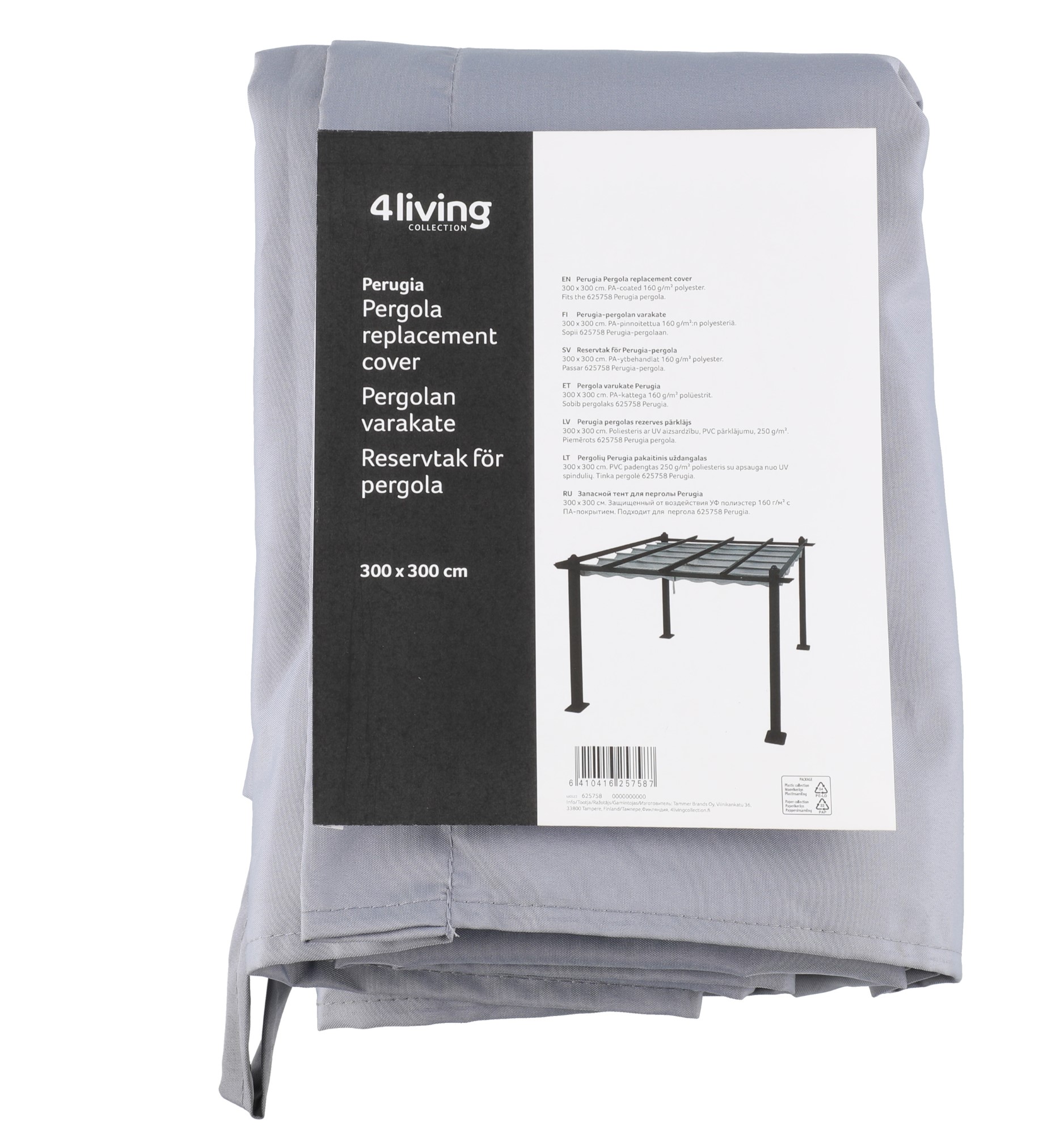 Perugia Pergola reservöverdrag. PA fuktsäker polyesterväv (160 g/m2). Storlek 300 x 300 cm.