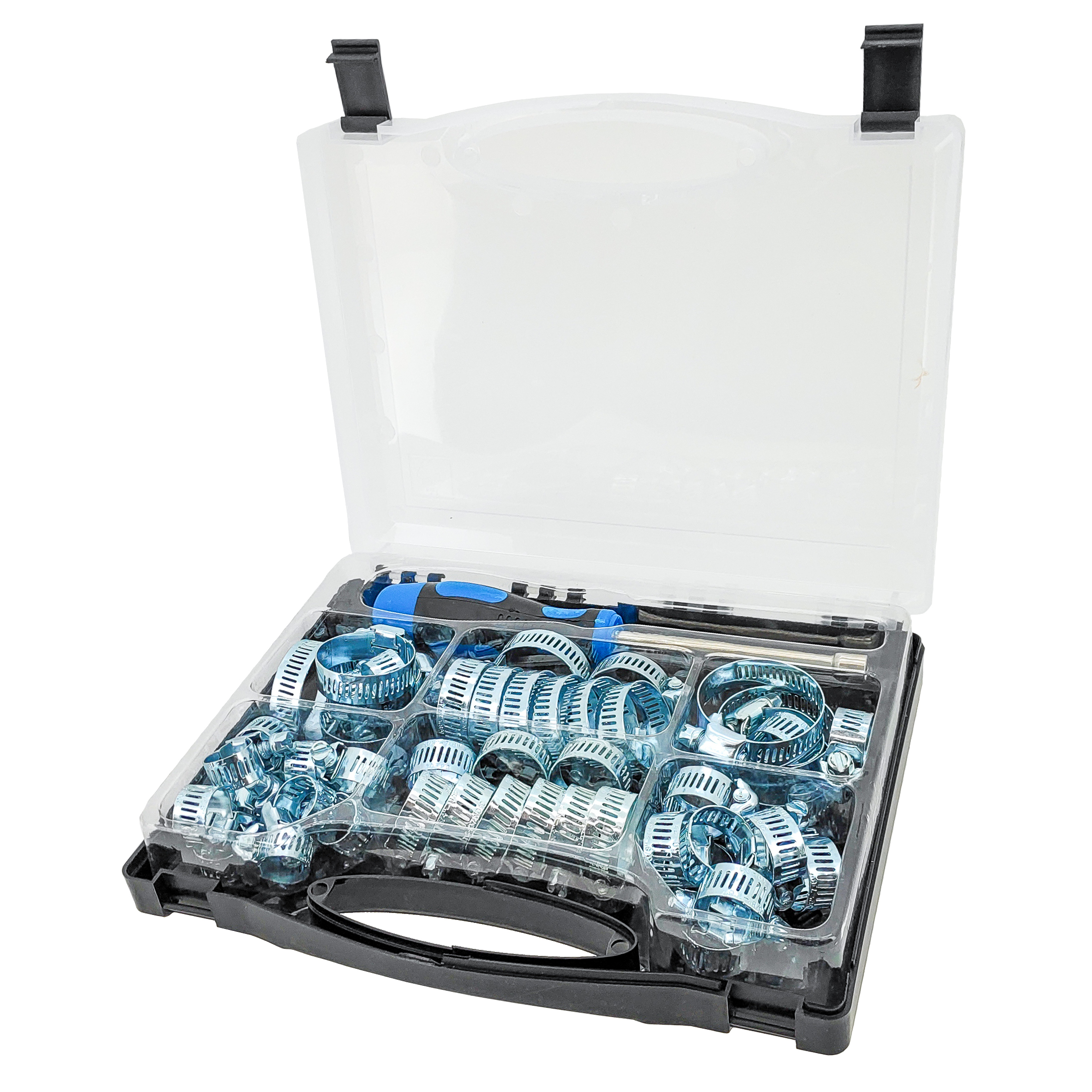 Slangklämset med de vanligaste storlekarna. Inkluderar passande skruvmejsel (OBS! Mejseln är blå, inte röd)!