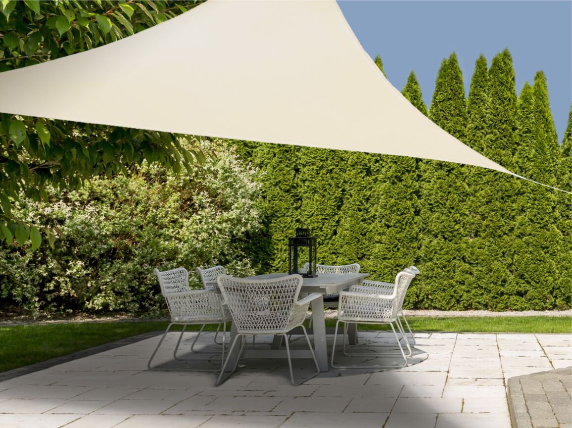 Tillbringa sommardagarna avslappnad under en triangulär solskydd. Ett vackert tillskott till dina gårdsmöbler eller terrassen och ger ett bra skydd mot solen. Lätt att fästa på exempelvis byggnader, träd och pelare.