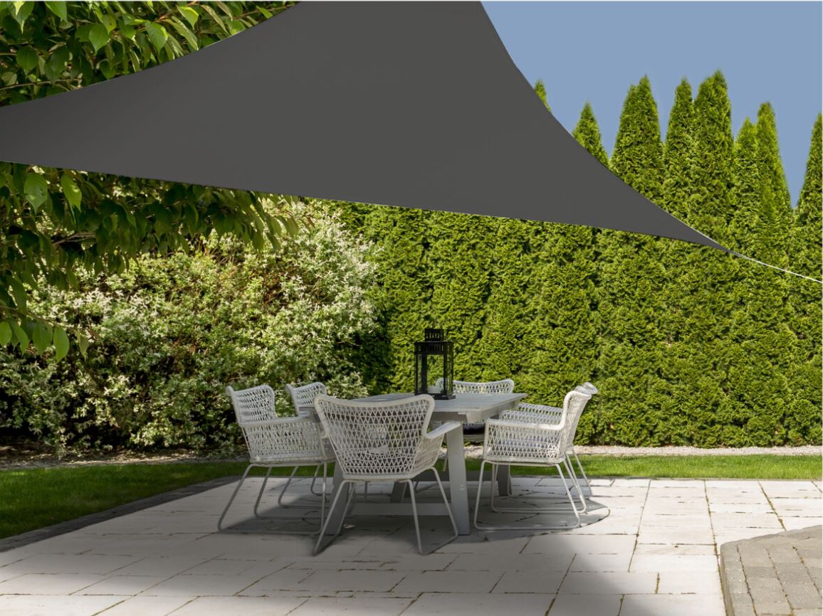 Tillbringa sommardagarna avslappnad under en triangulär solskydd. Ett vackert tillskott till dina gårdsmöbler eller terrassen och ger ett bra skydd mot solen. Lätt att fästa på exempelvis byggnader, träd och pelare.