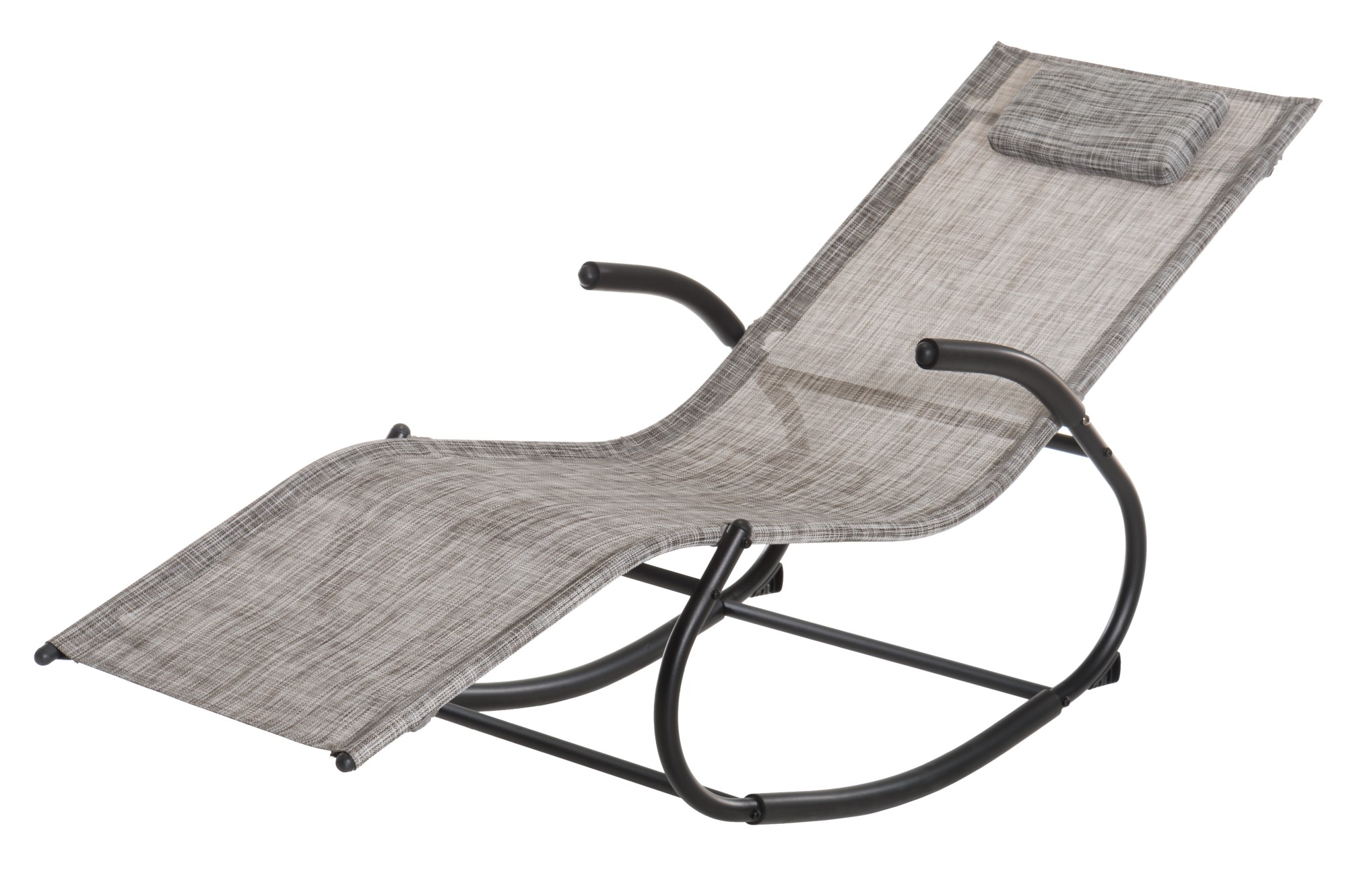 En bekväm, gungande solstol för terrassen och trädgården. Slitstark stålram, textilen 2x1 tyg. Storlek: 60 x 172 cm. Max lastkapacitet 120 kg.