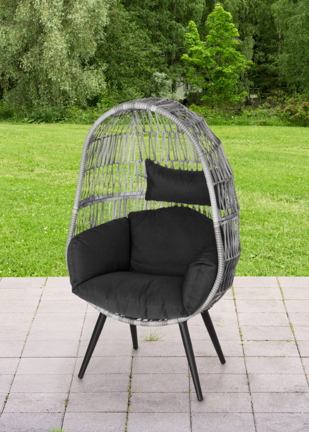 - Material: Stålram, polyetenfläta, polyester