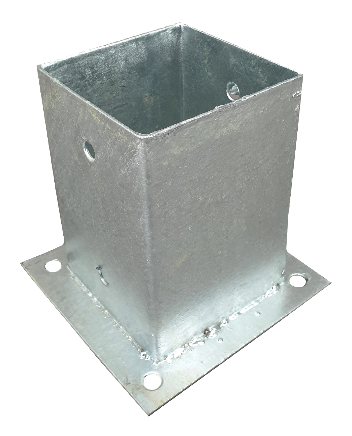 Stolpfot 100 x 100(x150) Högkvalitativ och slitstark basplatta för staket. Storlek: 100 x 100 mm Höjd 150 mm Väggtjocklek 2,5 mm Vikt 1,5 kg